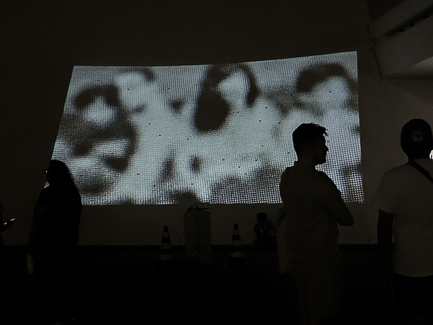 Aparição, uma sequência de 10 fotografias pixeladas em que é simulado a queima de pontos de luz.